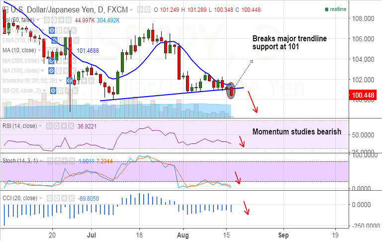 - The pair has broken major trendline support at 101, which is immediate resistance and further above 10-DMA (101.46) caps upside.