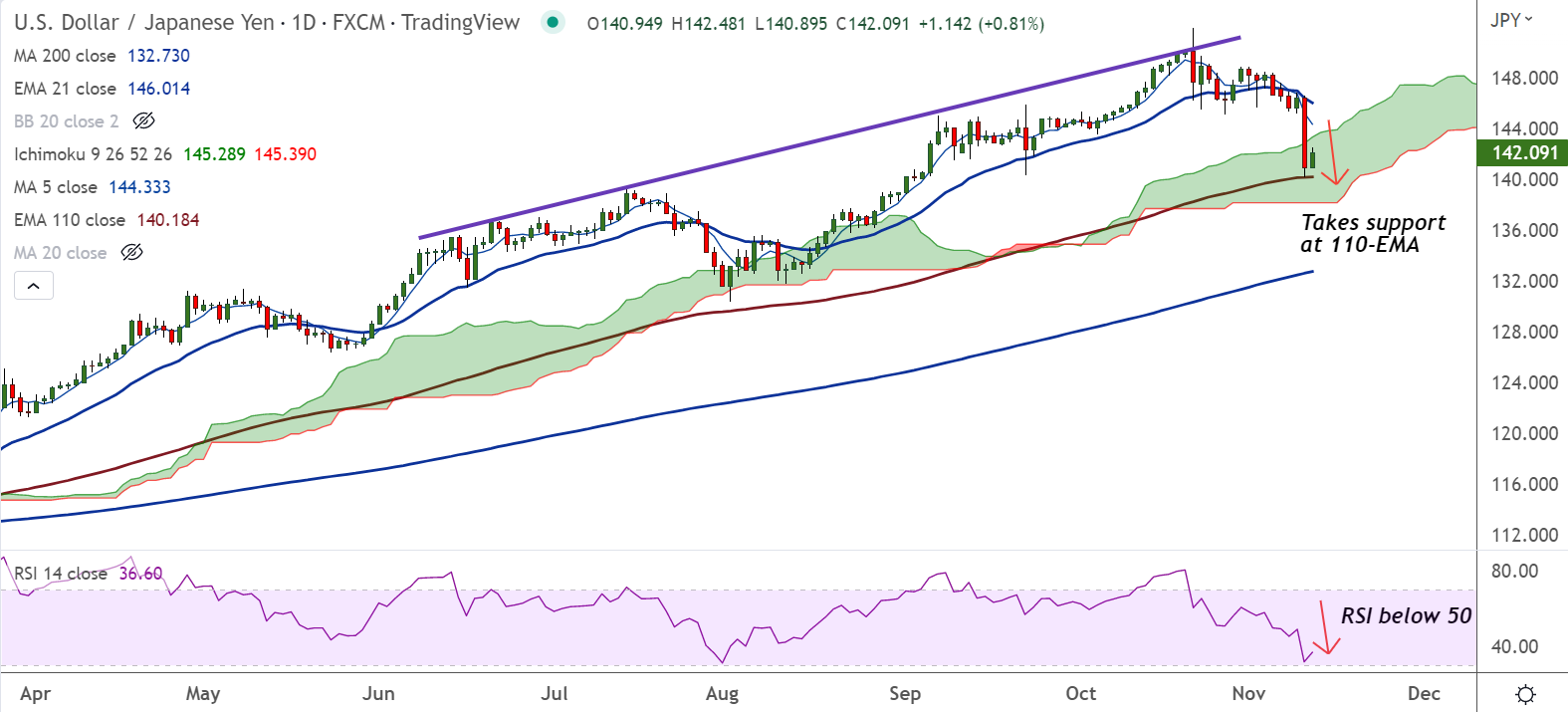 USD/JPY saw the biggest slump in 14 years on Thursday after US Inflation surprised markets with a fall in October.