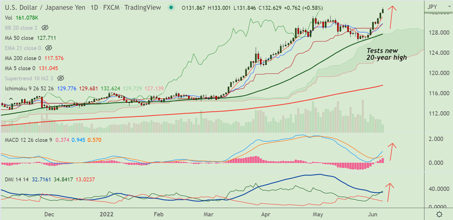 The pair has hit fresh 20-year highs above 132 handle, outlook remains bullish.