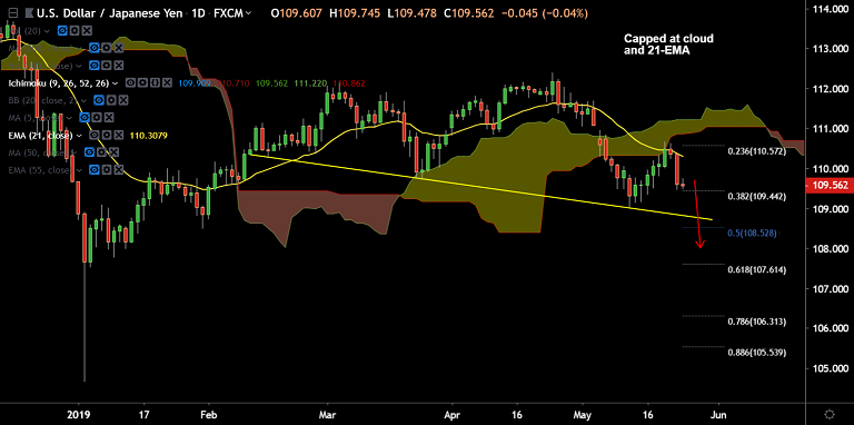 Recovery in the pair was capped at 21-EMA and cloud resistance.