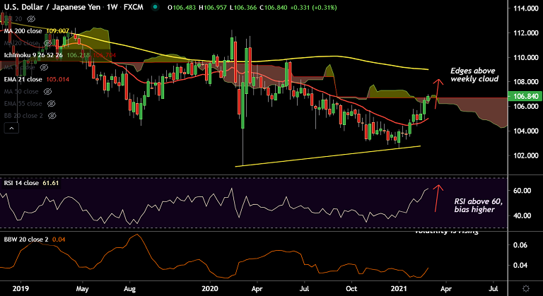 Technical indicators remains bullish. The pair has edged above weekly cloud. Momentum is bullish and volatility is rising.