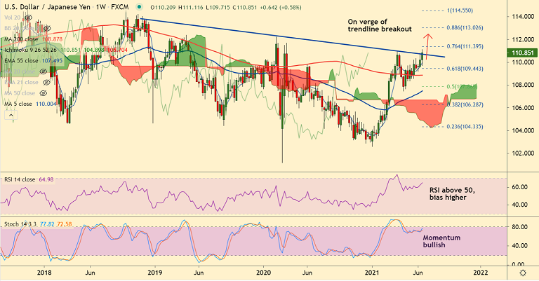 - USD/JPY was trading largely unchanged at around 110.85 at around 03:55 GMT, outlook bullish.