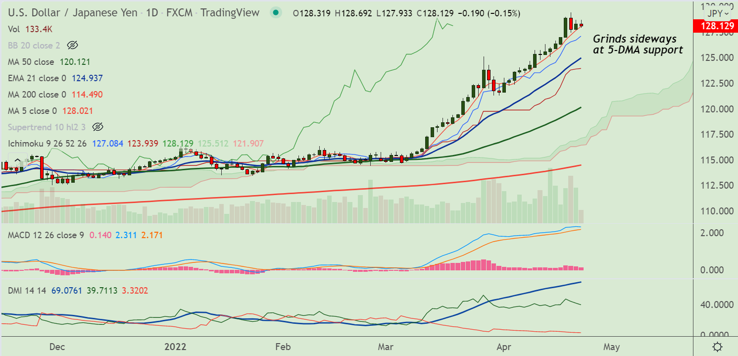 - The pair is extending sideways at 5-DMA support, intraday bias is neutral