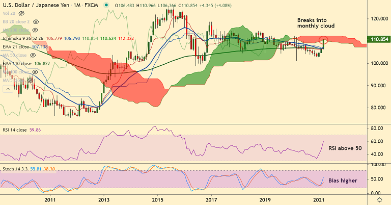 Technical studies indicate a high probability for a break above 111 handle, with focus on President Joe Biden’s speech.