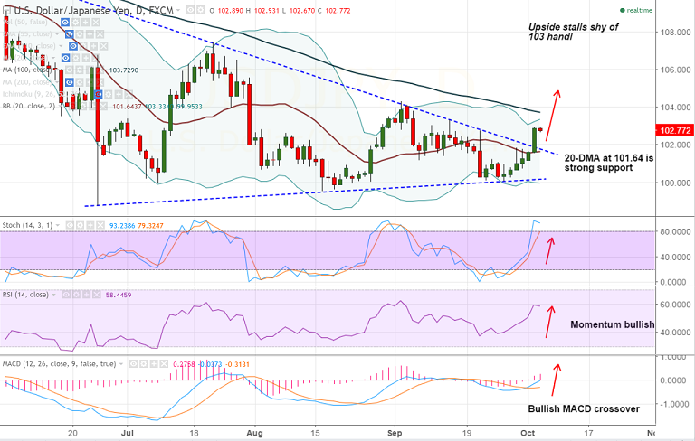 - Major resistance levels - 103, 103.23 (weekly 20-MA), 103.73 (100-DMA)