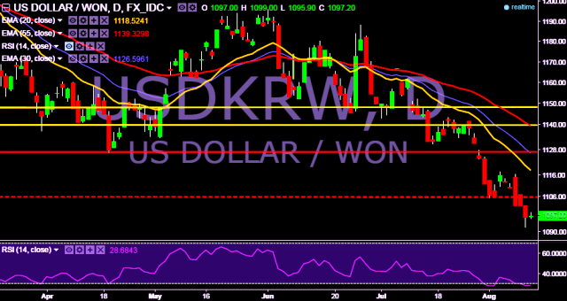 - USD/KRW is currently trading around 1,096 levels.