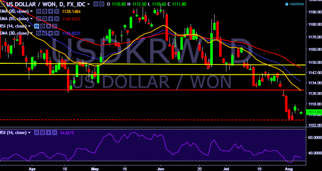 We prefer to take long position in USD/KRW only above 1,117 with stop loss at 1,105 and target 1,142.