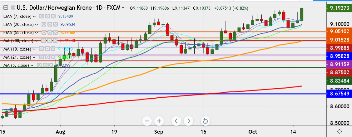 - Immediate resistance is located at 9.2010 and a close above could take it till 9.2190.