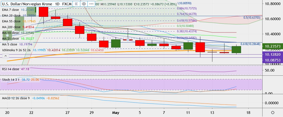- On the downside, support is around 10.1282 break below could take it till 10.0919.