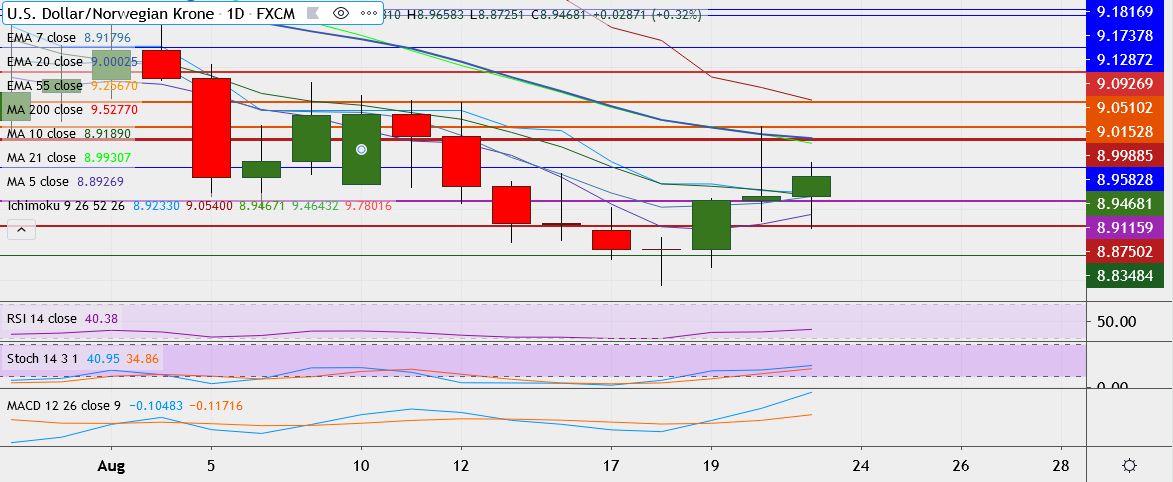 - Immediate resistance is located at 8.9856, close above could take it till 9.0058 (20-EMA).