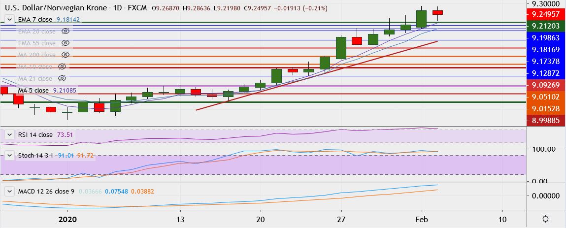 - Immediate resistance is located at 9.3000, and close above could take it till 9.3052.