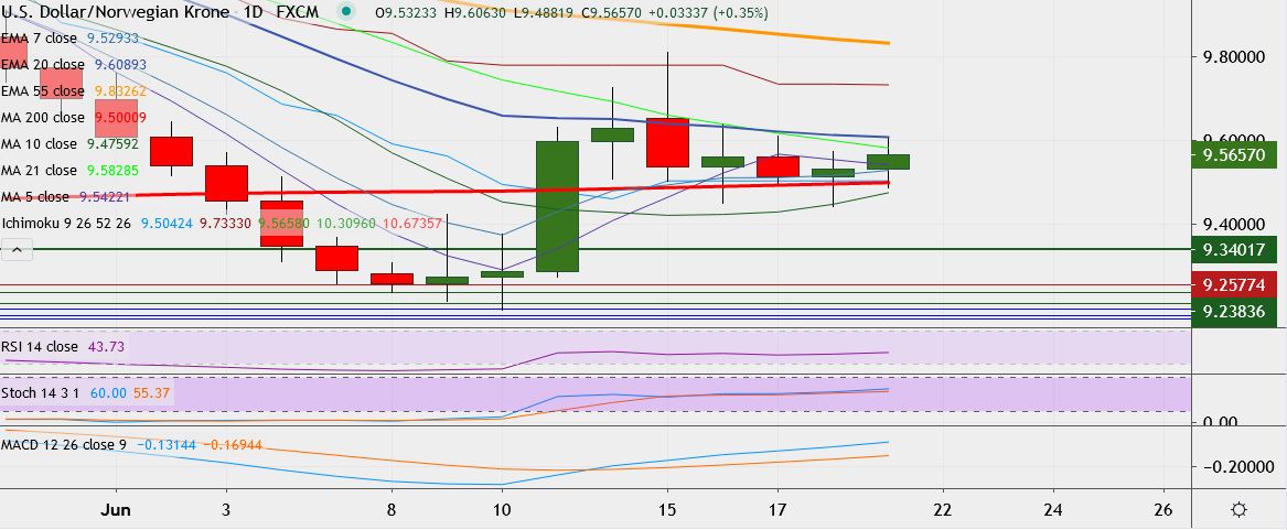 FxWirePro: USD/NOK retreats from 1-week low, major support at 10-DMA