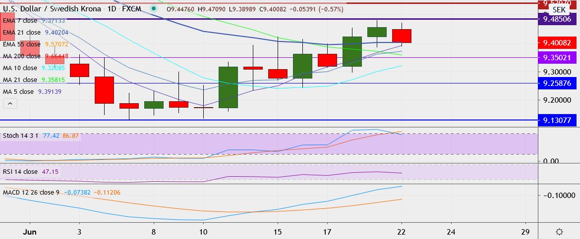 FxWirePro: USD/SEK halts 2-day winning streak, faces resistance at 9.4800