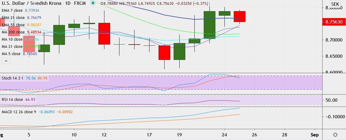 FxWirePro: USD/SEK halts 4-day rally, minor support at 7-EMA