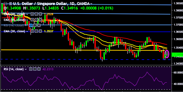 - USD/SGD is currently trading around 1.3490 marks.