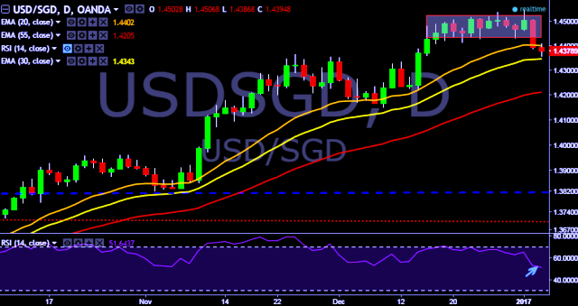 We prefer to take short position in USD/SGD around 1.4390, stop loss at 1.4506 and target of 1.4219.