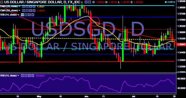 We prefer to take short position in USD/SGD only below 1.3480, stop loss 1.3537 and target 1.3420/1.3357.
