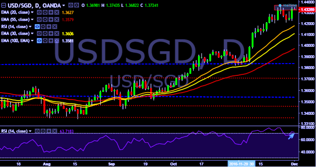 We prefer to take long position in USD/SGD only above 1.4354, stop loss 1.4208 and target of 1.4481.