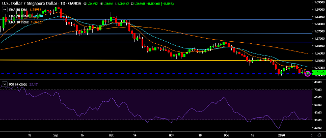 - USD/SGD is currently trading around 1.3467 marks.