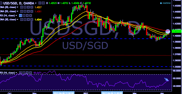 We prefer to take long position in USD/SGD only above 1.4081, stop loss 1.4052 and target of 1.4160.