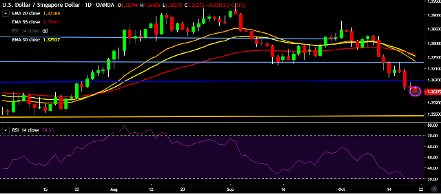 We prefer to take short position on USD/SGD around 1.3630, stop loss at 1.3670 and target of 1.3580/1.3522.