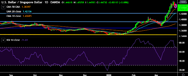 We prefer to take short position on USD/SGD only below 1.4455, stop loss 1.4510 and target of 1.4383.