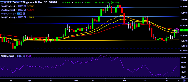 We prefer to take long position on USD/SGD only above 1.3638, stop loss at 1.3590 and target of 1.3680.