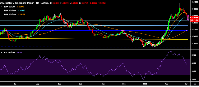 We prefer to take long position on USD/SGD only above 1.3890, stop loss 1.3840 and target of 1.4010.