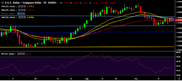 - USD/SGD is currently trading around 1.3775 marks.
