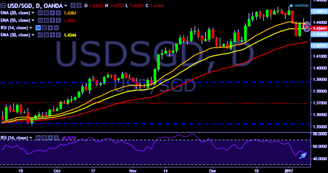 We prefer to take short position in USD/SGD around 1.4350, stop loss 1.4437 and target of 1.4269/1.4219.