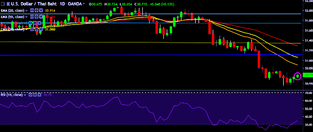 - USD/THB is currently trading around 30.71 marks.