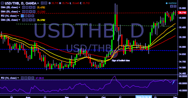 We prefer to take long position in USD/THB around 35.70, stop loss at 35.56 and target of 35.90.