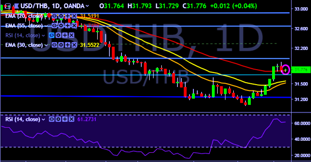 We prefer to take long position on USD/THB around 31.75, stop loss at 31.70 and target of 31.92/32.02/32.10 mark.