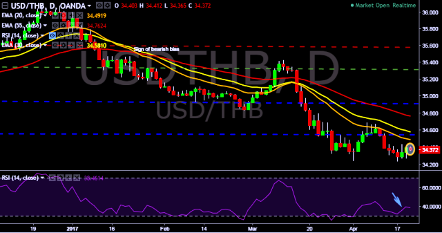 We prefer to take long position in USD/THB only above 34.44, stop loss at 34.27 and target of 34.68.