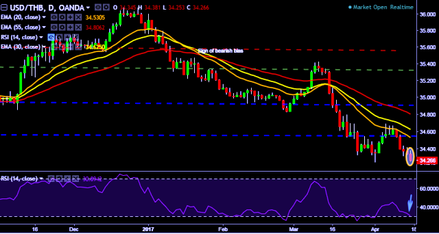 We prefer to take short position in USD/THB only below 34.24, stop loss at 34.42 and target of 34.01/33.74.