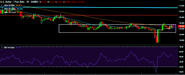 We prefer to go short on USD/THB around 30.30, stop loss at 30.40 and target of 30.15/29.96.