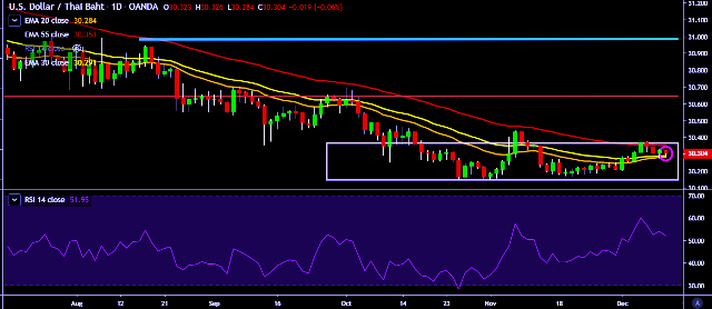 - USD/THB is currently trading around 30.30 marks.