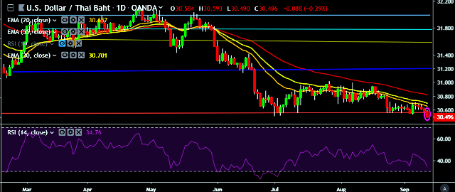 We prefer to go short on USD/THB around 30.55, stop loss at 30.70 and target of 30.28/30.12.