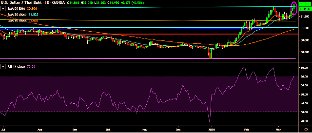 - USD/THB is currently trading around 32.04 marks.