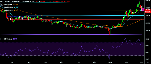- USD/THB is currently trading around 31.37 marks.