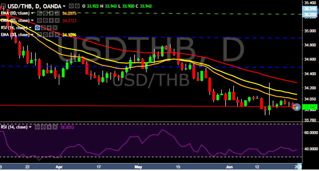 We prefer to take short position in USD/THB only below 33.82, stop loss 34.05 and target of 33.58.