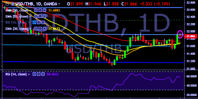 We prefer to take long position on USD/THB only above 31.94, stop loss 31.80 and target of 32.22.