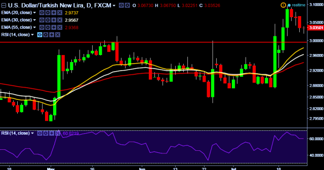 We prefer to take long position in USD/TRY around 3.03 stop loss 3.0190 and target 3.0749.