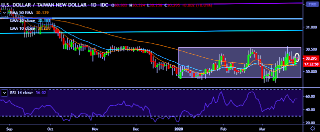 - USD/TWD is currently trading around 30.28 marks.