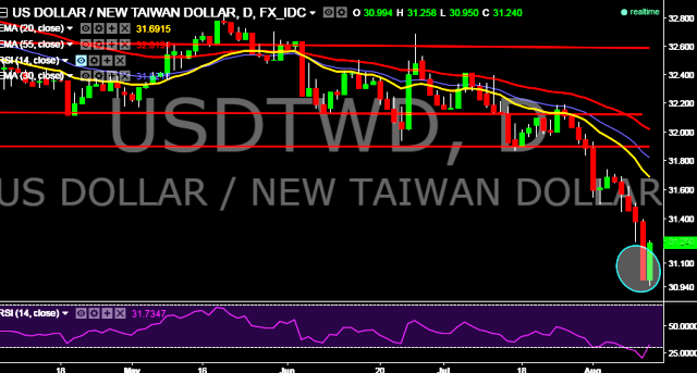 - USD/TWD is currently trading around 31.23 marks.
