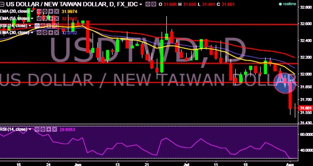 We prefer to take short position in USD/TWD around 31.65, stop loss 31.98 and target 30.85.