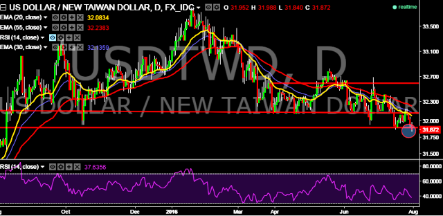 We prefer to take short position in USD/TWD around 31.90, stop loss 32.12 and target 31.54/ 30.85.