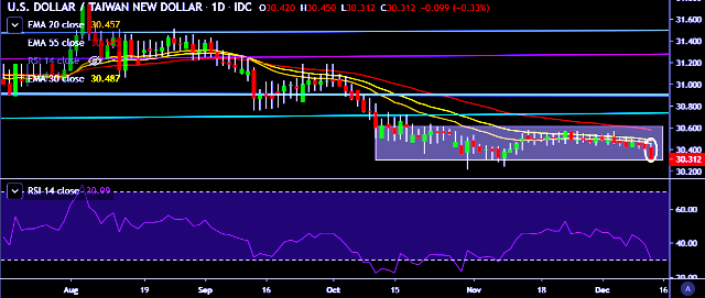 We prefer to take short position on USD/TWD around 30.35, stop loss at 30.50 and target of 30.11/29.84.