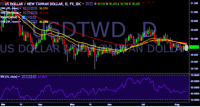 We prefer to take short position in USD/TWD only below 30.10 mark, stop loss at 30.30 and target of 30.01/29.84.
