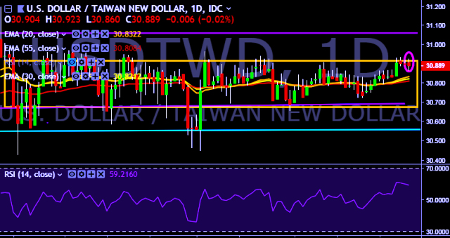 We prefer to take long position on USD/TWD only above 30.92, stop loss at 30.68 and target of 31.18.